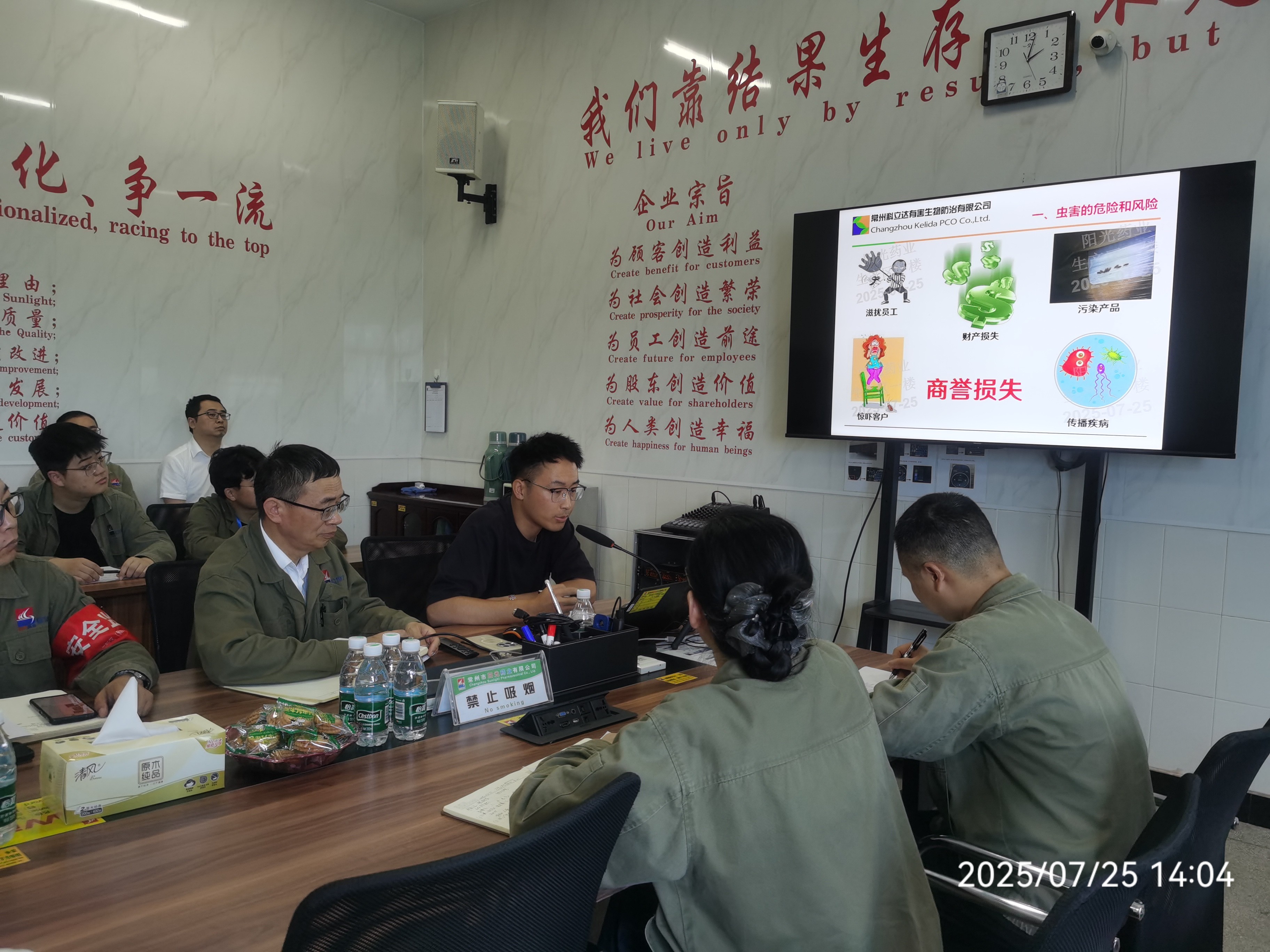 聚焦医药行业痛点,定制专业培训内容 讲座结合医药行业GMP标准要求,围绕“有害生物危害识别”“常见防治技术应用”“日常卫生管理规范”三大核心模块展开。成经理通过案例分析,详细解 读了老鼠、蟑螂、蚊虫等有害生物对药品生产车间、仓储环境的潜在风险,重点演示了物理防治(如粘捕装置、防虫网)的协同操作流程,并针对洁净区、实 验室等特殊区域提供定制化防控建议。