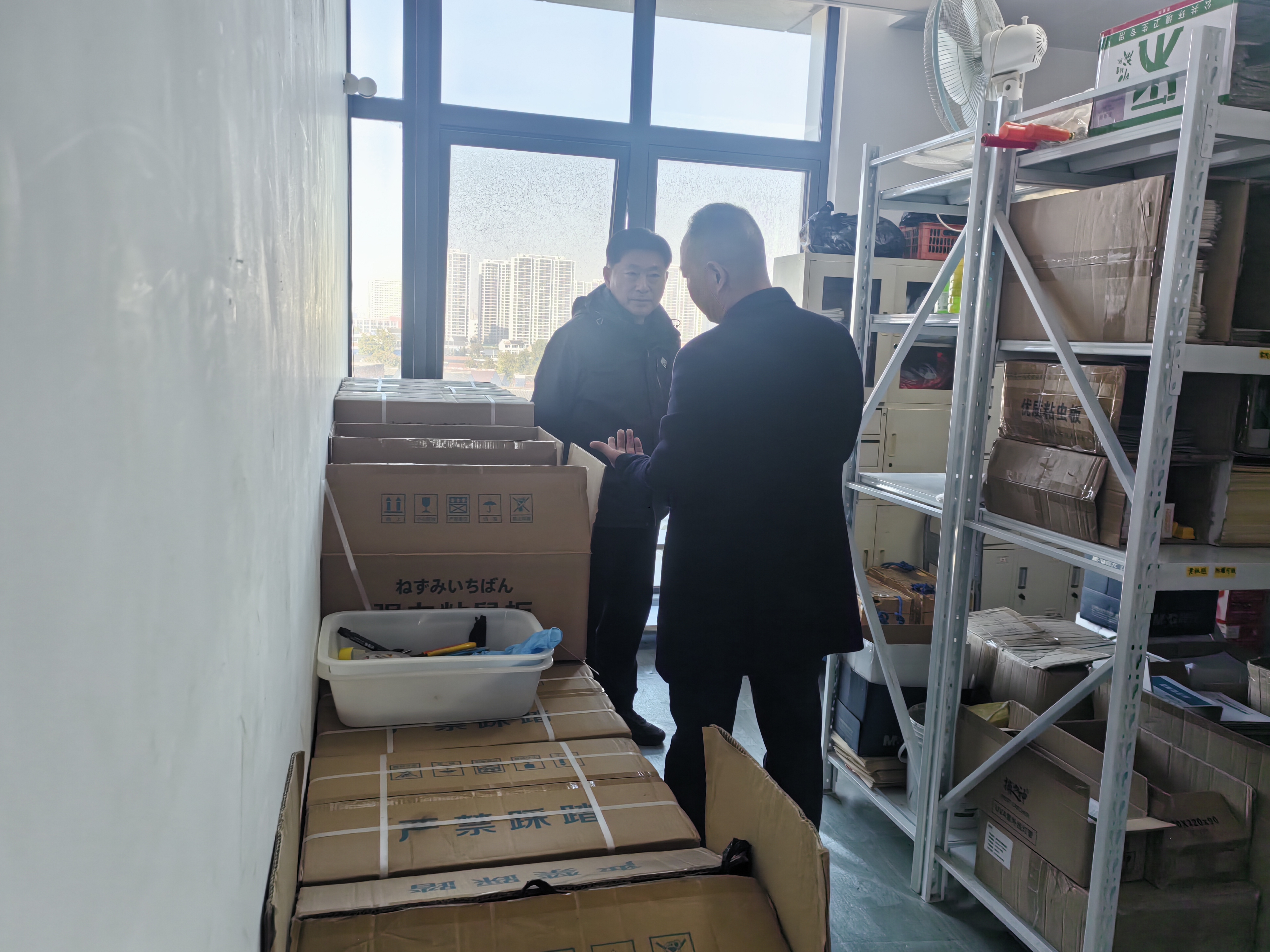 图为我公司负责人韩正广正在带领评审专家对药物仓库进行审核